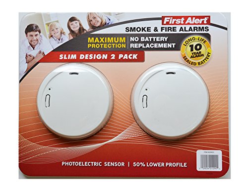 First Alert Smoke & Fire Alarm Slim Design 2 pack 10 year long-life sealed battery