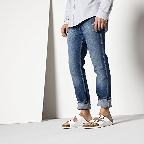 Binding : Apparel Product Description The often imitated, never duplicated, category-defining, two-strap wonder from Birkenstock. A comfort legend and a fashion staple. With adjustable straps and a magical cork footbed that conforms to the shape of your foot, a truly custom fit is as effortless as the classic design. Birko-Flor is made of easy-to-care-for and hygienic PVC, which has been lined on the inside with a soft, breathable layer of fleece. This high-quality material is very gentle on the skin, and it's comfortable while also being very durable. The flexible leather lining, which is gentle on the skin, nestles up softly against your foot and adjusts to its contour. The open-pored and thus very breathable surface makes for a comfortable foot climate, even during more strenuous physical activity. Cork is a sustainable material extracted from the bark layer of the cork oak. This natural product is insulating and offers very good cushioning. EVA (ethylene vinyl acetate) is a high-quality, very light, elastic material with extremely good cushioning. As a result, it smooths out slight irregularities in the floor and ensures that every step is softly cushioned.. 0
