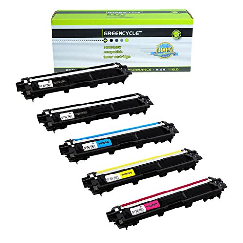 Greencycle 5 PK Replacement TN221 TN225 BK/C/Y/M high yield toner cartridges Set for Brother HL-3170CDW HL-3170CW Printer