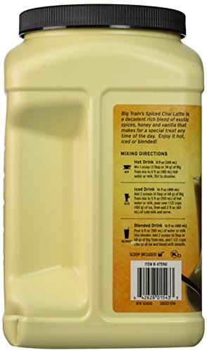 -. Feature : Dented Jugs, from shipping. Special Sale! While supplies last. / Hot, iced, or blended / Caffeine Content 65mg per serving / Big Train Spice Chai