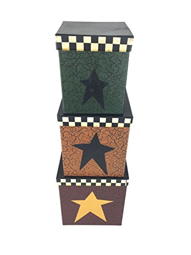 Craft Outlet Square Country Star Nesting Box (Set of 3), 7.5" x 7.5" x 5"/7" x 7" x 4.5"/6.5" x 6.5" x 4"
