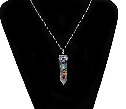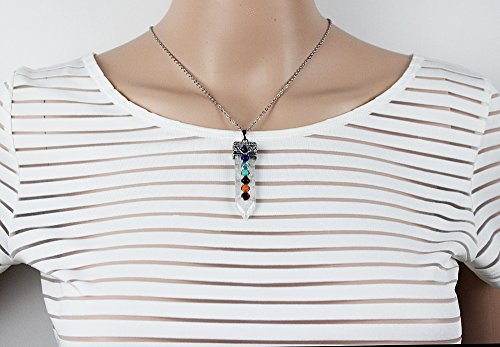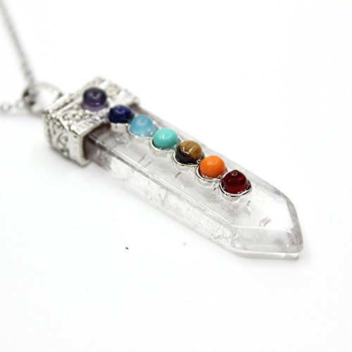 - Title : KISSPAT Natural Quartz Crystal 7 Chakra Gemstones Pendant Necklace With 20" Long Genuime Stainless Chain, White Quartz