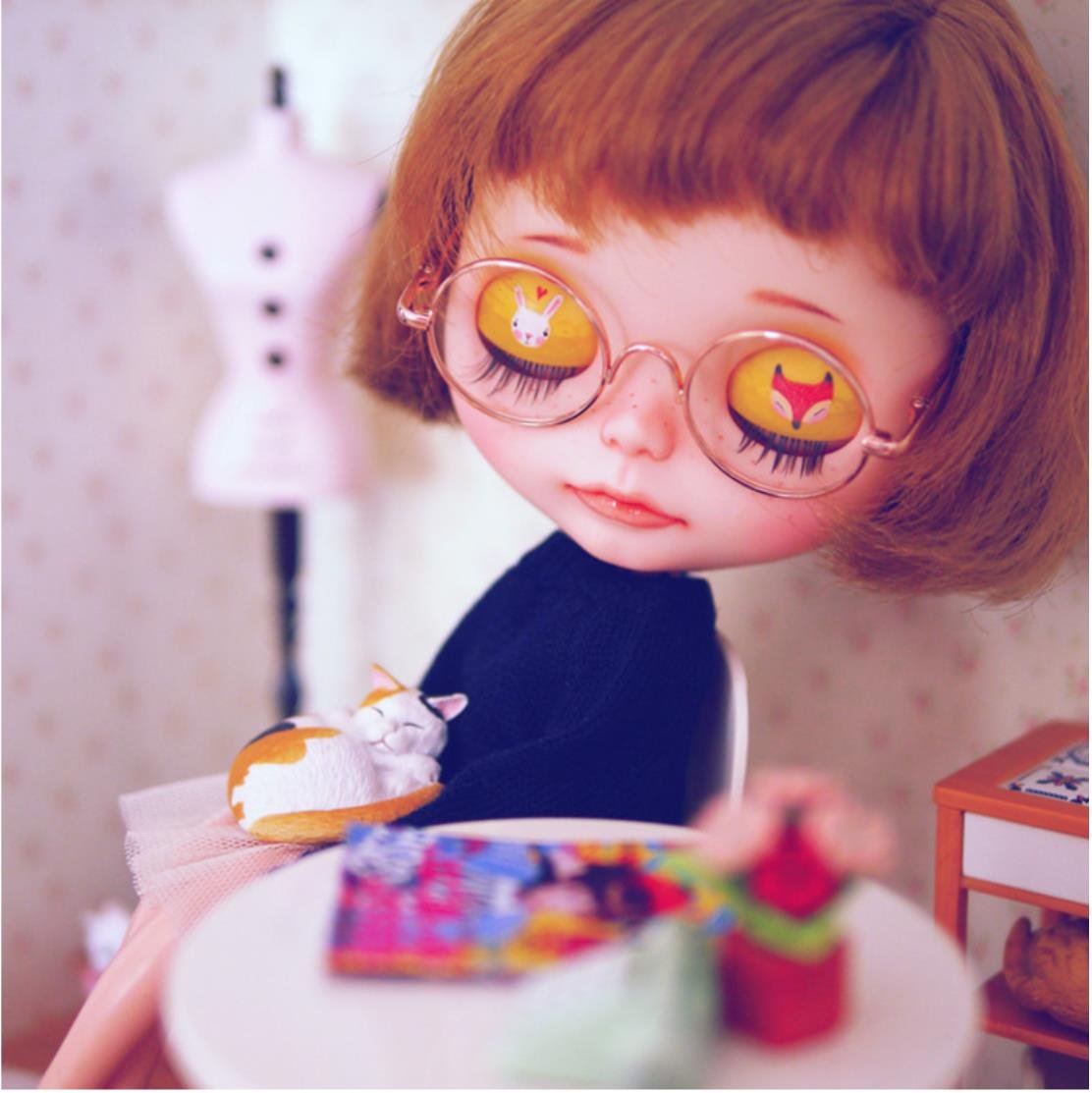 Blythe doll and 1/3 Doll retro round glasses choose color (Gold)
