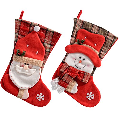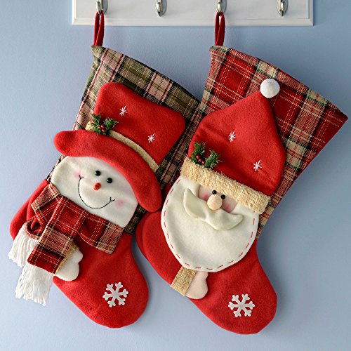WeRChristmas Christmas Stockings Tartan Santa And Snowman, 52 Cm - Multi-Colour, Set Of 2