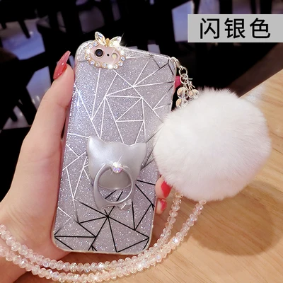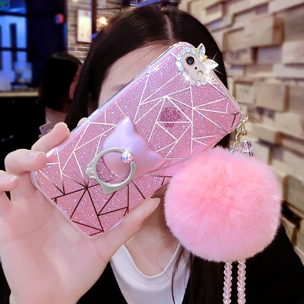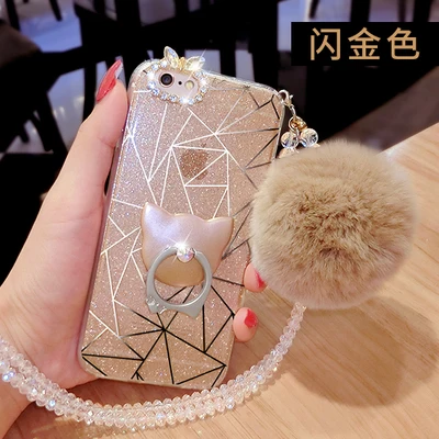 Features:Diamond Cute Cat Ring Real Rabbit Fur Ball Crystal Chain