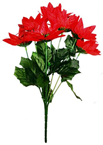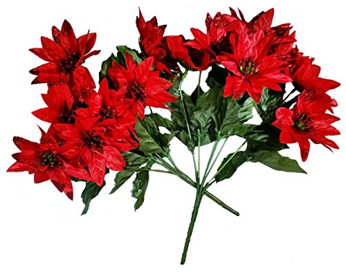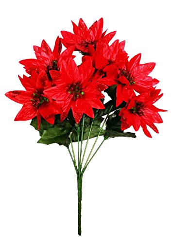 Artificial Poinsettia Bouquet; 7 stems W/Glitter Pack of 2