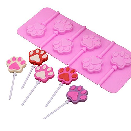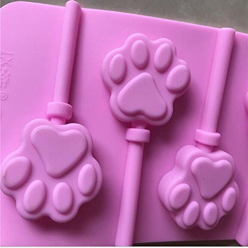 (Set of 2)6 Holes Paw Print Silicone Lollipops Mold with 12pcs Sticks,for Candy Ice Cream Chocolate and Cupcake Topper Decoration