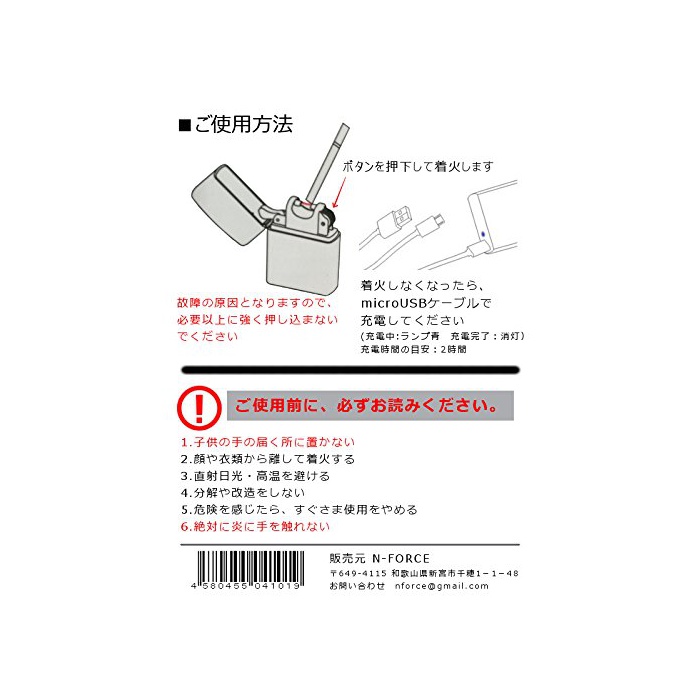 원본상품명: N-FORCE (エヌフォス) USBライタ プラズマタイプ 充電式