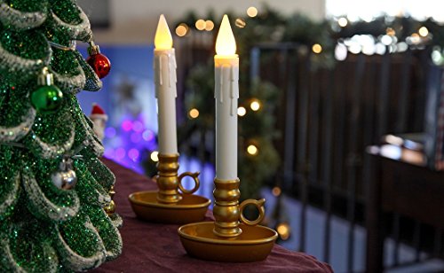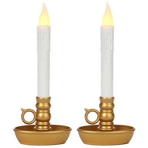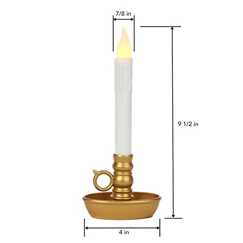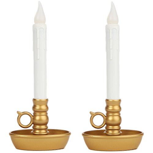 Lily's Home Battery Operated Single Window LED Candles, with Timer. Gold Base. Set of 2