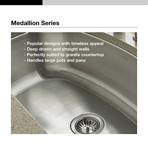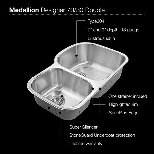 Houzer MC-3210SL-1 Medallion Designer Series Undermount Stainless Steel 70/30 Double Bowl Kitchen Sink, Small Bowl Left