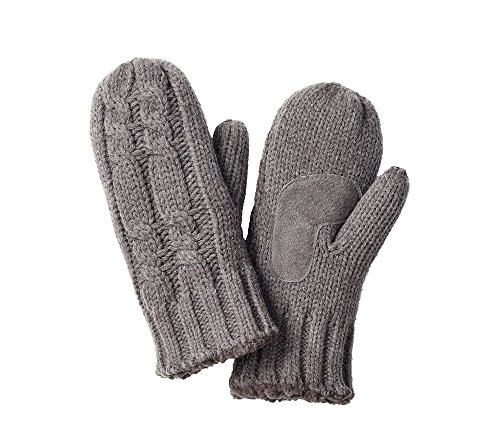 Product DescriptionThese chunky double cable knit mittens feature a two-inch ribbed cuff to keep the cold out and the warmth in. The Sherpasoft lining provides additional warmth and comfort.0