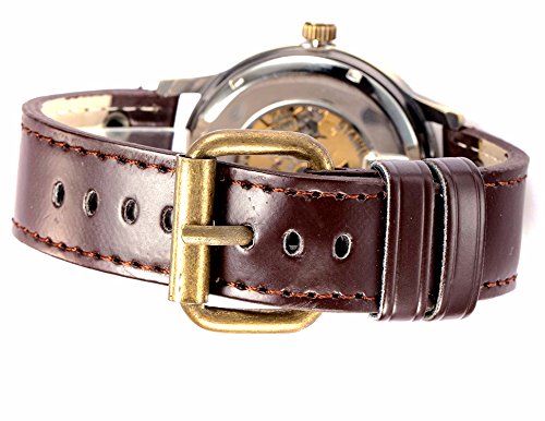 COMFORTABLE TO WEAR: Luxury New Retro Style Skeleton Design. A-class Metal Material , Harden Glass , High-quality Leather Strap