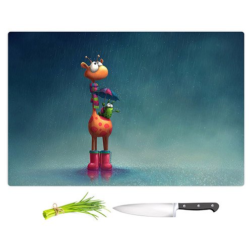 DiaNoche Designs CB-TooshtooshWinterGiraffe2 Tooshtoosh Winter Giraffe Cutting Boards from, Large 15" x 11"