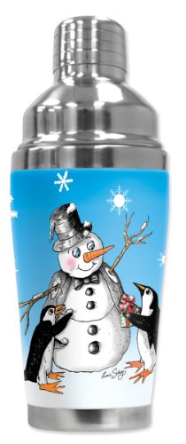 -. Title : Mugzie 733-SHA "Penguin's & Snowman" Cocktail Shaker with Insulated Wetsuit Cover, 16 oz, Black