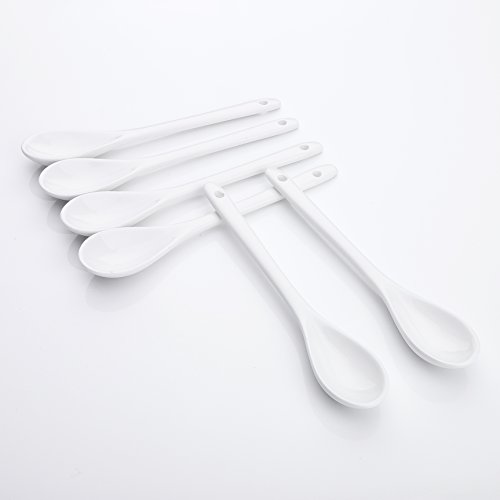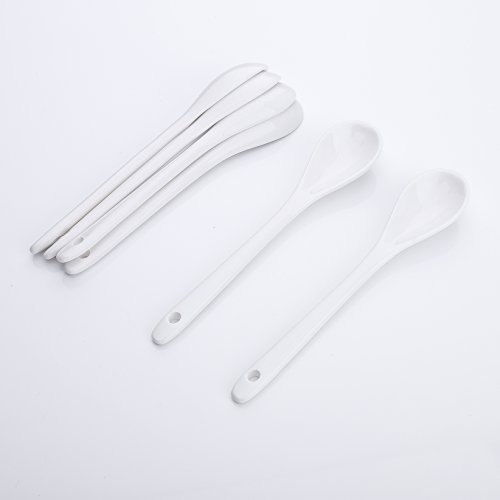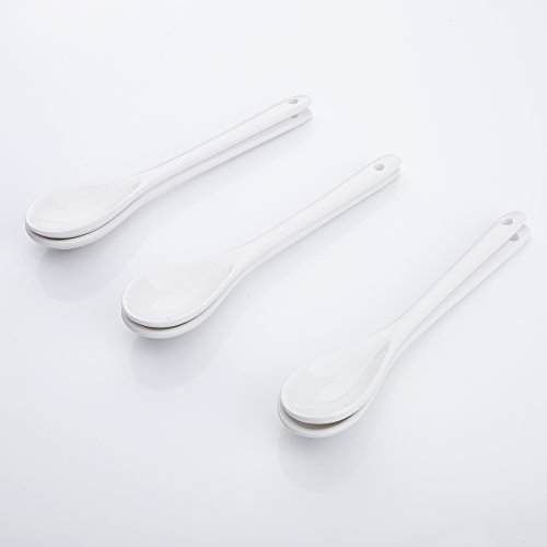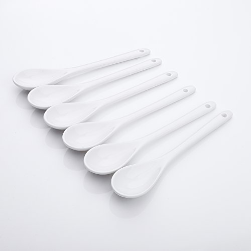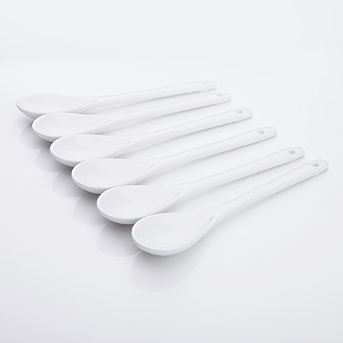 ARTVIGOR Chinese Style Long Handle Espresso Coffee Spoons, 6" (15cm) White Porcelain Mini Tea Mixing Spoon Dessert Spoon, Set of 6