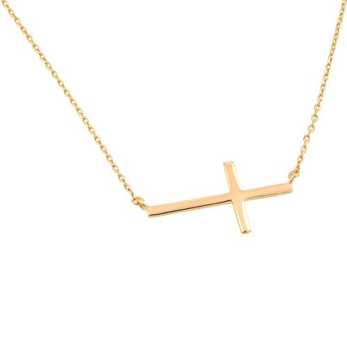 -. Title : Yellow Gold Plated Sideways Cross Design Necklace Charm Pendant