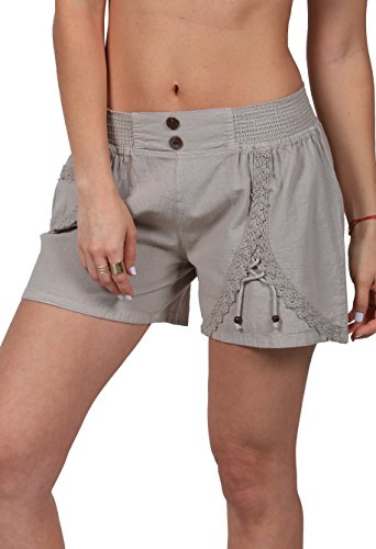 -. Binding : Apparel -. Brand : Cotton Natural -. Color : Beige -. Department : womens -. Feature : Beautiful white beach shorts, ideal for all summer season. / Enjoy the simplicity of this solid color shorts and express your fashion style. / The perfect beach shorts, to give you a fresh look with a touch of embroidery. / Very popular for cruises and beach getaways. Elastic waistband and front pockets. / Made of 100% Pima Cotton. -. Label : Cotton Natural -. Manufacturer : Cotton Natural -. Model : CN3333 -. PackageQuantity : 1 -. ProductGroup : Apparel -. ProductTypeName : SHORTS -. Publisher : Cotton Natural -. Size : Small -. Studio : Cotton Natural -. Title : Cotton Natural Women's Embroidered Shorts