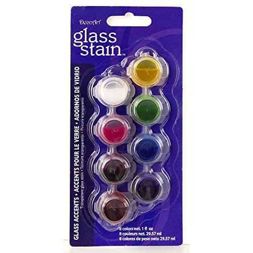 DecoArt Glass Stain 8-Pot Paint Set, Glass Accents