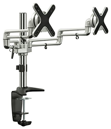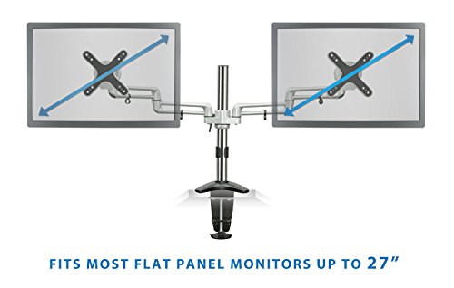 Mount-It! MI-732 Dual Monitor Office Desk Stand Mount Bracket with Clamp and Grommet Base for LCD LED Computer Monitors, Full-Motion Articulating Tilting 35.2 lbs Capacity, Up to 27 inch Black/Silver
