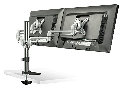 Tilts 15 degrees up or down to reduce glare and to adjust viewing angle, depending on the lighting conditions and user seating height. Each articulating arm (capable of 180 degrees of movement) can freely adjust its angles to enable you the best ergonomic positioning for the two monitors. High degree of movement allows a curved installation of the monitors for immersive gaming experience.