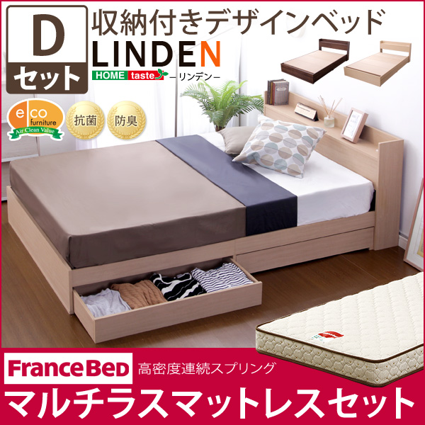 収納付きデザインベッド【リンデン-LINDEN-(ダブル)】(マルチラススーパースプリングマットレス付き)