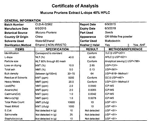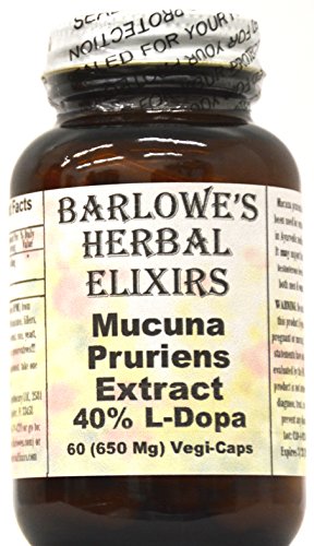 -. Binding : Health and Beauty -. Brand : Barlowe's Herbal Elixirs -. Feature : Mucuna Pruriens Has a Long History of Use In Indian Ayurvedic Medicine! / Highest Quality Extract in Vegi-Caps Which Are Kosher, Halal & Vegan Certified! / Bottled in Glass! No Stearates, No Fillers, No Gluten, No Wheat, Rice, or Corn Powders! / No Artificial Flavors, Colors or Preservatives! / Flat Rate Shipping - All of Barlowe's Products Can Ship Together At One Low Combined Rate! -. IsAdultProduct : 0 -. Label : Barlowe's Herbal Elixirs -. Manufacturer : Barlowe's Herbal Elixirs -. MPN : B43 -. PartNumber : B43 -. ProductGroup : Health and Beauty -. ProductTypeName : HEALTH_PERSONAL_CARE -. Publisher : Barlowe's Herbal Elixirs -. Studio : Barlowe's Herbal Elixirs -. Title : Mucuna Pruriens 40% L-dopa Extract - 60 650mg VegiCaps -Stearate Free, Bottled in Glass!