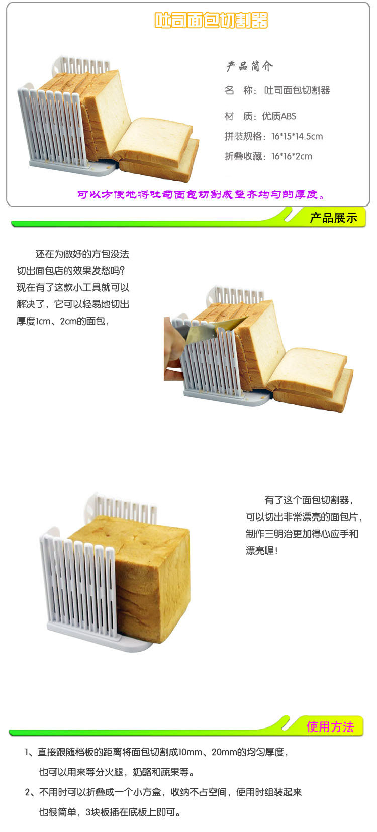 With it your toast bread slices do not have to worry about cutting the thickness of the different, the operation is also more convenient, and super practical auxiliary tools.