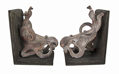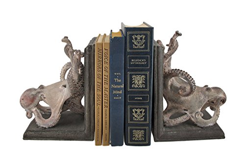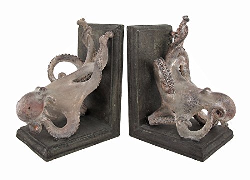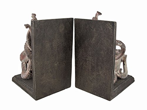 Resin Decorative Bookends Squiggly Armed Octopus Bookends Set Of 2 6.5 X 8.5 X 4.5 Inches Gray