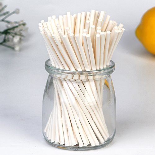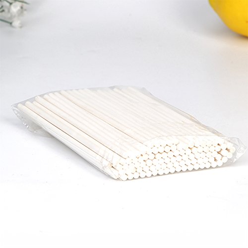 YestBuy 100pcs/lot 4.7"(12cm) Cake Pop Sucker Paper Sticks Lollipop Candy Lolly Sturdy Fun Food Safe 4.7" Lollipop Sticks Count of 100 (White)