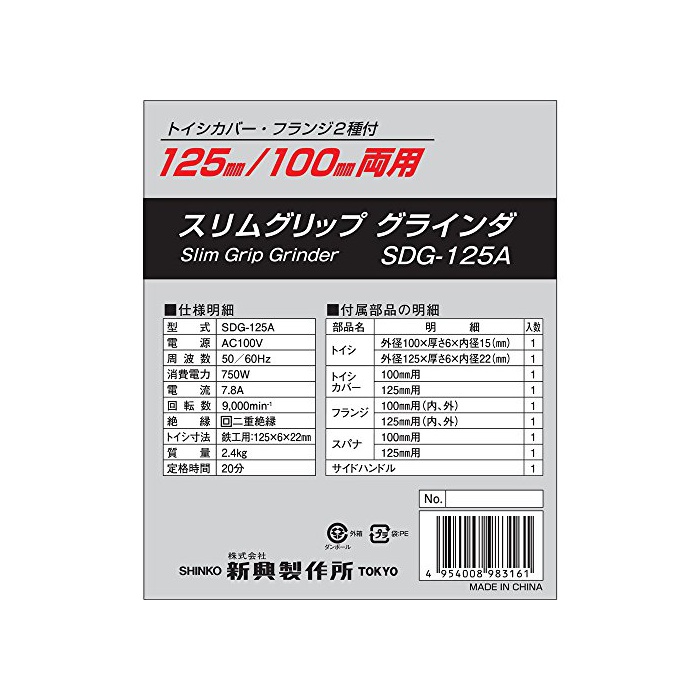 shinko 제작소 SHINKO(shinko) 슬림 그립 그라 인 다 125mm/100mm양용 SDG-125A