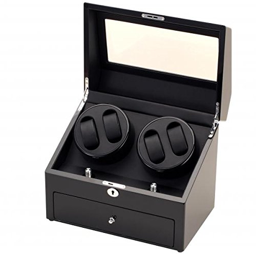 -. Title : Black Finish Wood Quad Watch Winder and Watch Storage Box