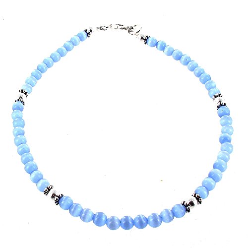 -. Title : Womens Light Blue Cats Eye (Fiber Optic) & Sterling Silver Ladies Beaded Anklet with Daisies