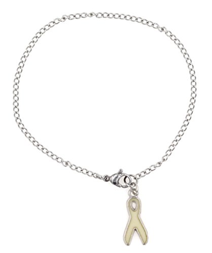 -. Binding : Jewelry -. Brand : It's All About...You! -. Color : White -. Department : womens -. EAN : 0740175296302 -. Feature : Quantity: One (7.5" + 2" Stainless Steel Extender Chain) 316 Stainless Steel Bracelet with Attached Alloy Charm. Perfect size for girls and women. Adjustable from 7.5" to 9.5". / Bracelet is made with quality 316 Stainless Steel. Hypoallergenic, durable and corrosion resistant. Great for everyday wear with little maintenance required. / Packaged in an organza bag and placed in a white pillow box for easy, beautiful gift giving. Pillow box is shipped flat to prevent damage and will need to have the ends pushed in P.R.Ior to gifting. / Stainless Steel bracelet link dimensions: 3x2x0.5mm. / Charm Size: 19mm x 8mm -. Label : It's All About You Jewelry -. Manufacturer : It's All About You Jewelry -. PackageQuantity : 1 -. ProductGroup : Jewelry -. ProductTypeName : FASHIONNECKLACEBRACELETANKLET -. Publisher : It's All About You Jewelry -. Studio : It's All About You Jewelry -. Title : 7.5” - 9.5” 316 Stainless Steel White Awareness Ribbon Ankle Bracelet Anklet, 2mm Curb Chain. Packaged in an Organza Bag and Placed in a Pillow Gift Box -. UPC : 740175296302