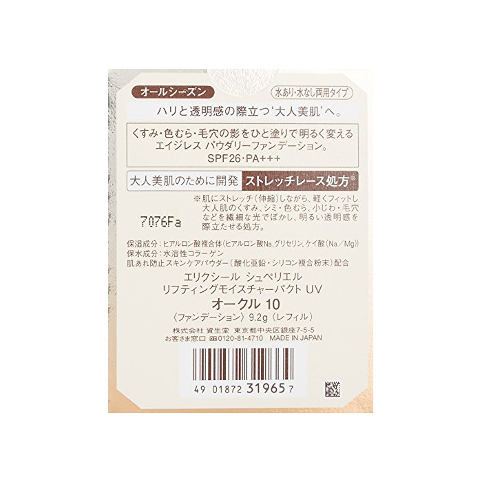 원본상품명: エリクシ?ル シュペリエル リフティングモイスチャ?パクト UV (レフィル) 9.2g