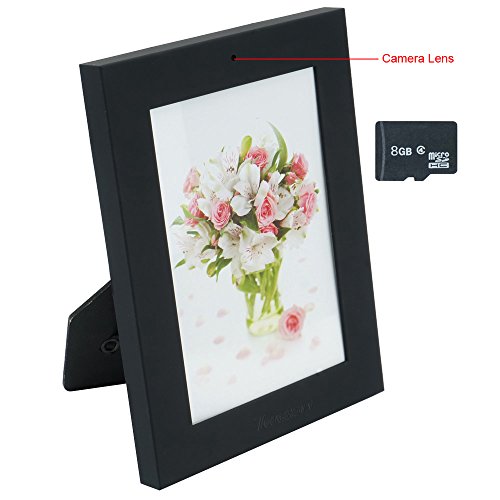 -. Feature : 【Mini Spy Camera】: disguised as a home photo fame, it has a pinhole camera built in, this spy camera allows you to record both audio and video without anyone realizing it. This is a motion activated hidden camera, perfect for home surveillance / 【Hidden Camera Motion Activated】: to save on memory space and electricity, the toughsty hidden camera can be set to record only when motion is detected / 【Hidden Video Recorder】: 1280x960 video resolution; real-time video recording; video format: AVI; video frame rate:25/30fps / 【Battery Operated Camera】: charge power voltage:DC5V ; charging time:2 hours; battery capacity:300mAh; operating battery life time:50min / 【8GB Micro Sd Card】: 8GB Micro SD Card included, (support 32GB Micro Sd Card in max)