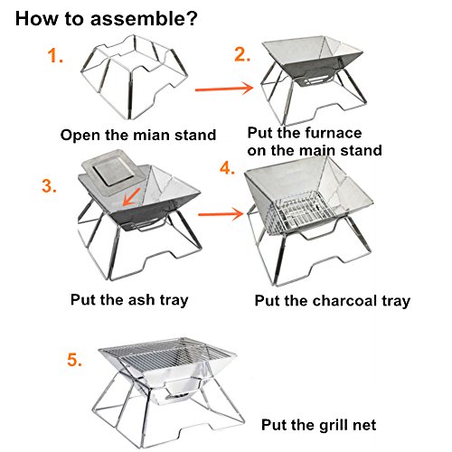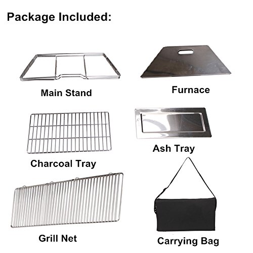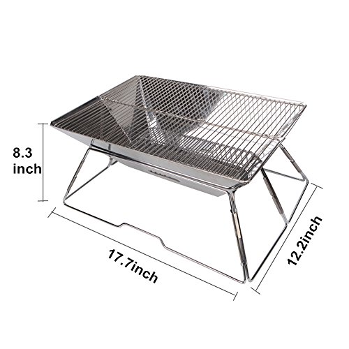 - EASY –ASSEMBLE : Easy to set up and tear down in 2 min, no other tool is needed. Grill Size:17.5 x 12 inches,great for burgers, fish, steaks, hot dogs, corn and more