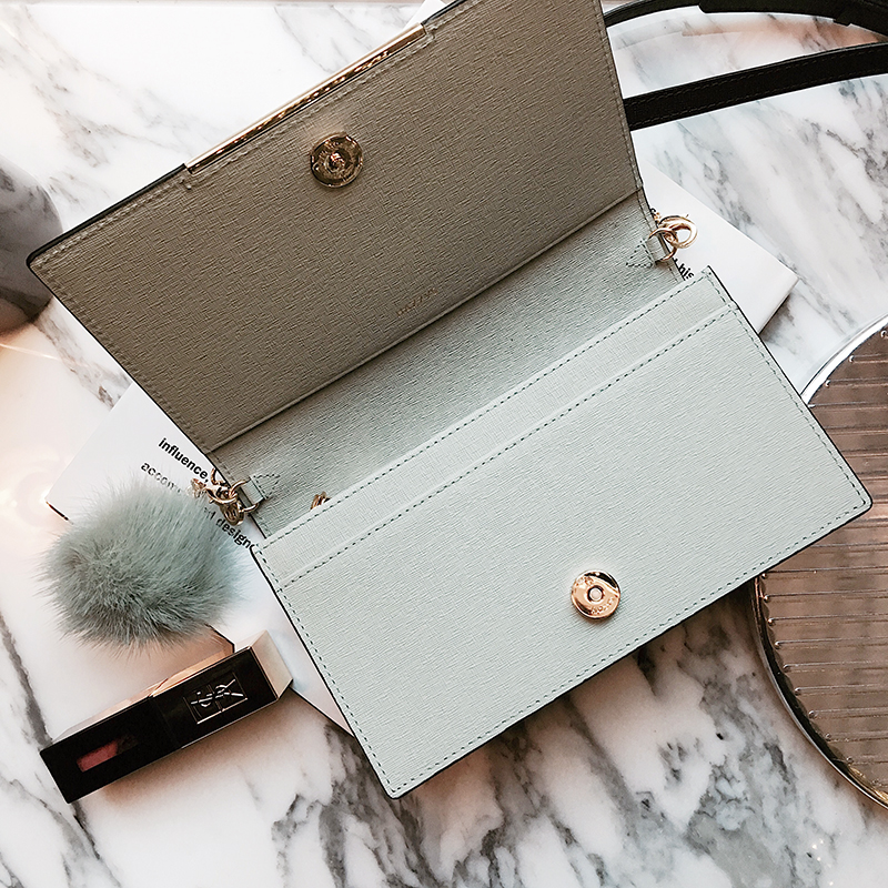 고급스러운 천연 가죽 소재 사용으로 클래식한 느낌을 주어 세미 정장이나 캐주얼 등 다양한 착장에 스타일링 할 수 있고, 탈착 가능한 크로스끈과 퍼 폼폼이가 내장되어 있어 미니 크로스백이나 숄더 및 클러치백 또는 장지갑 등 다양한 용도로 활용가능한 아이템입니다.