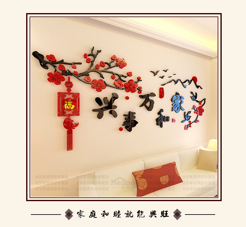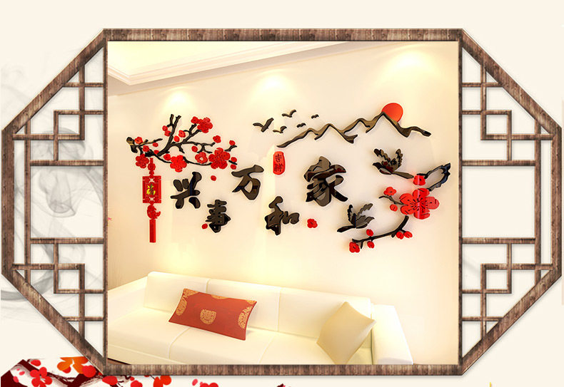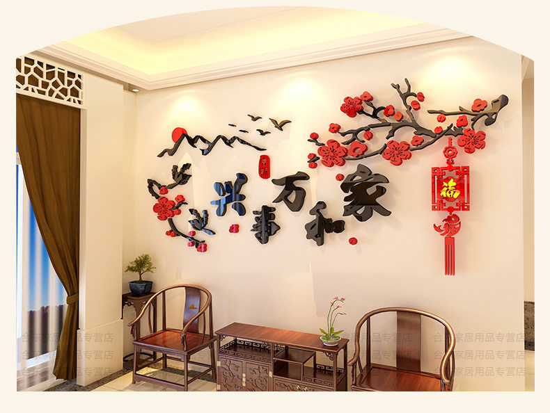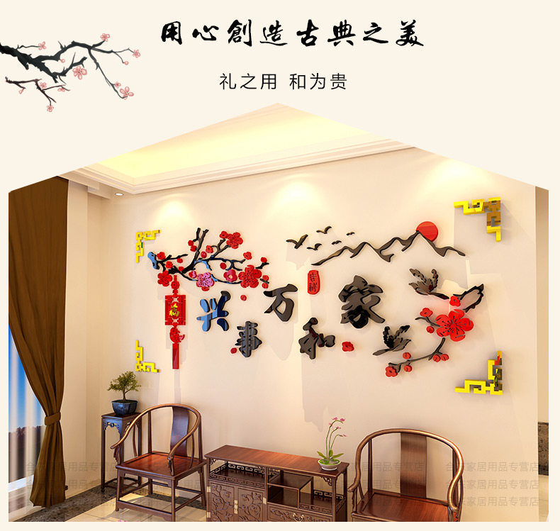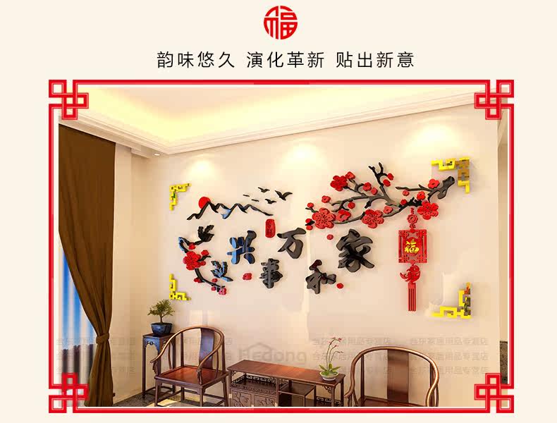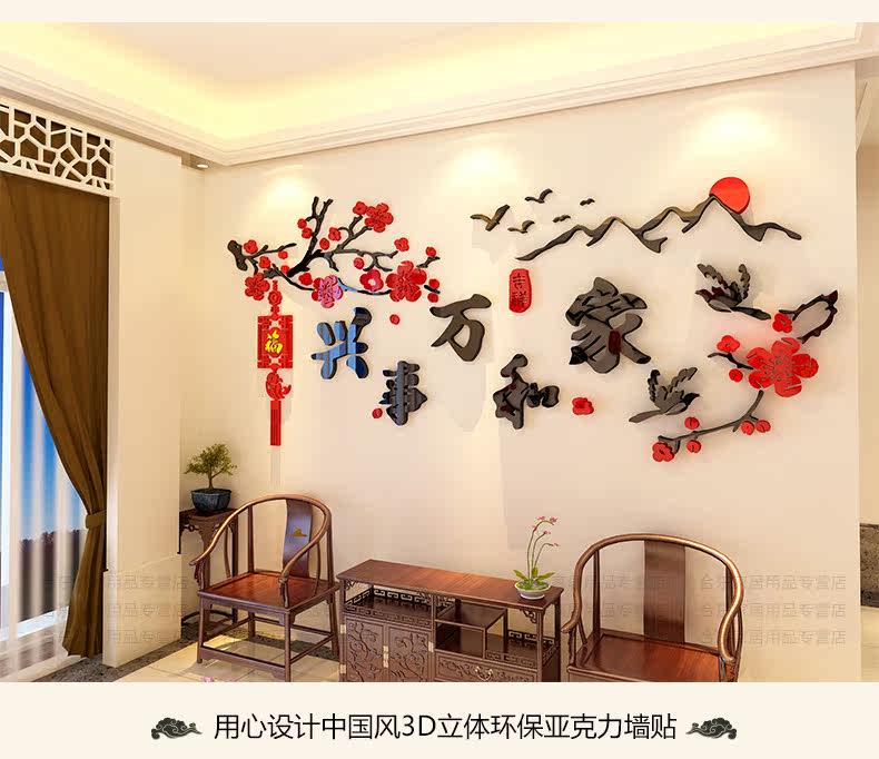 家和万事兴3d立体墙贴中国风客厅贴画沙发背景墙贴纸卧室墙壁装饰