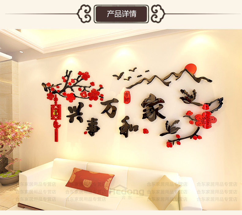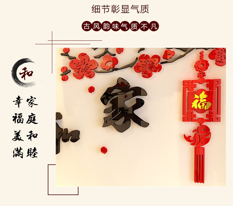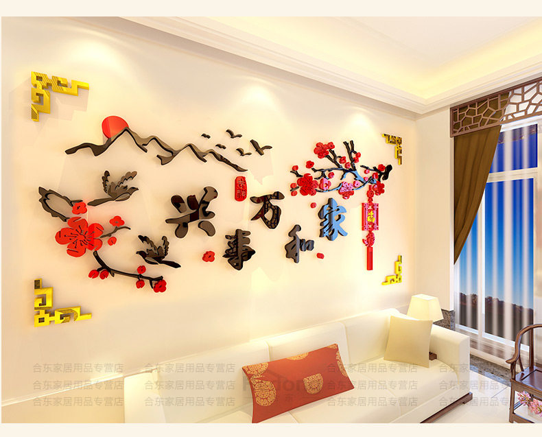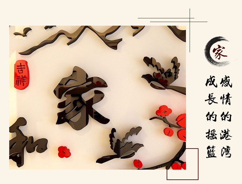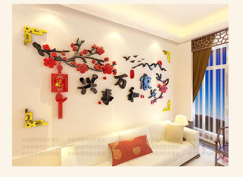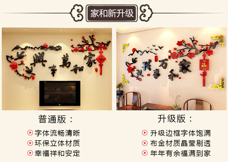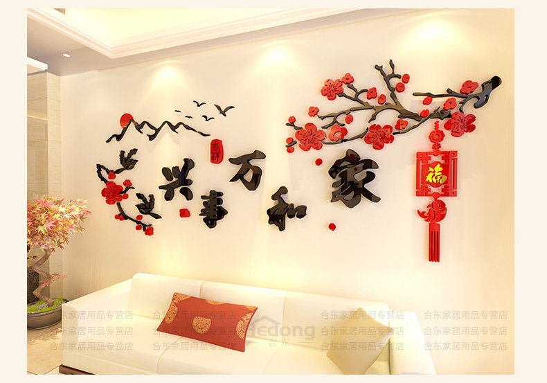 家和万事兴3d立体墙贴中国风客厅贴画沙发背景墙贴纸卧室墙壁装饰