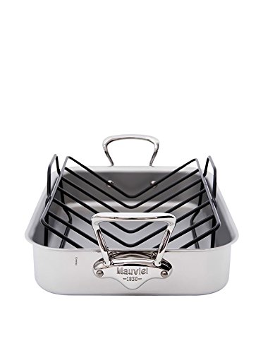 Mauviel 5217.15GWP M'Cook Roasting Pan With Rack, Injector and 9.8 quart/11.8" Cast Handle, Stainless Steel, 40" x 30"