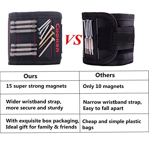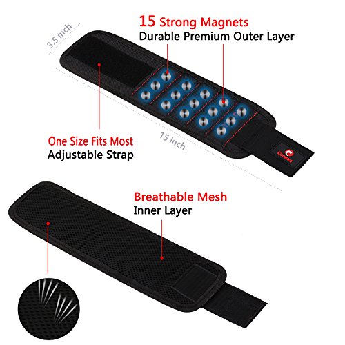 - • STRONG MAGNET WRISTBAND: Embedded in 15 super strong magnets, powerful enough for holding screws, bolts, nails, drill bits and other small tools. Perfect tools for home improvement, construction, woodworking and other DIY projects