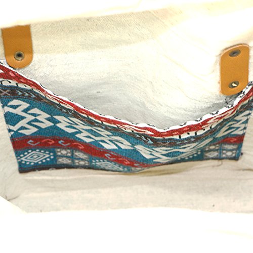 Woven Pattern - This tote bag is a mixed between the woven pattern of cotton and canvas. The short leather hand strap. One zipper on top and one pattern cotton pocket inside, the pocket inside is big enough for an iPad mini.