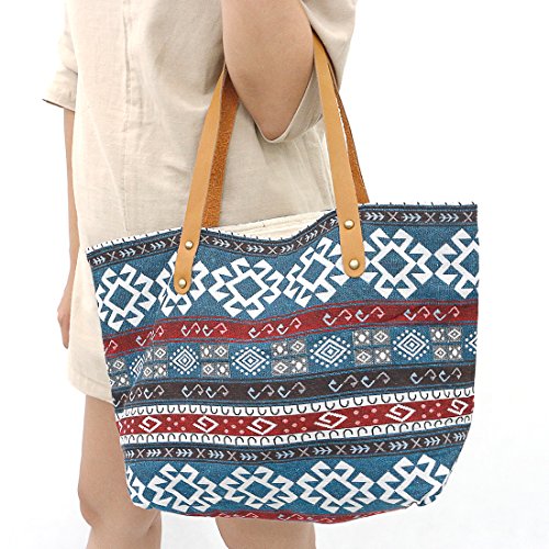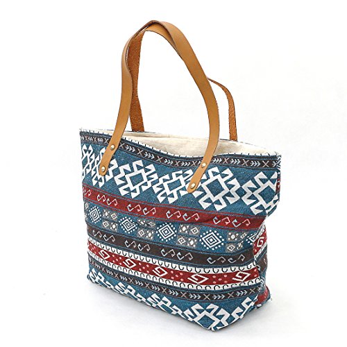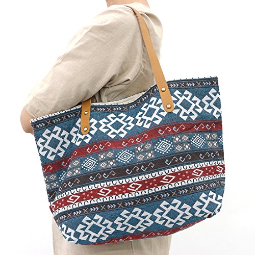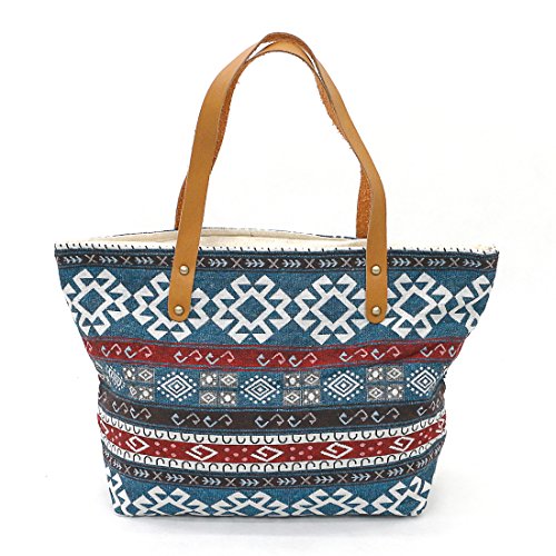 Taruron Handcrafted Canvas and Leather Casual Tote Handbag Daily Bag for Women
