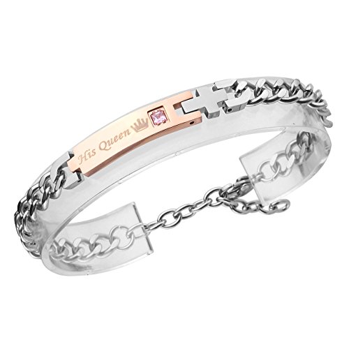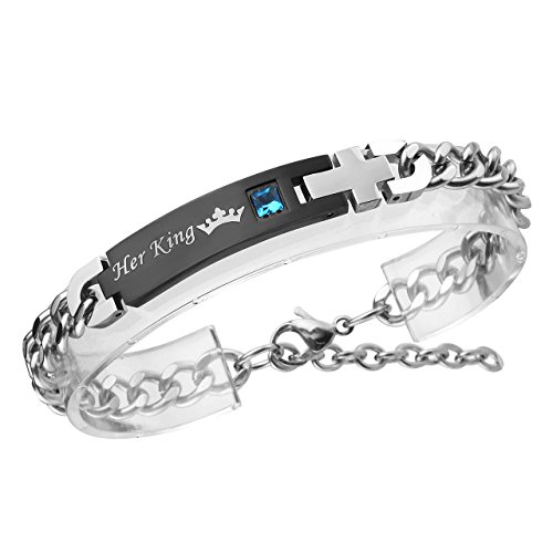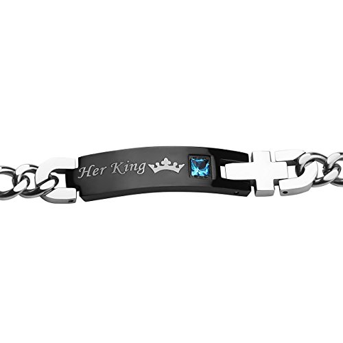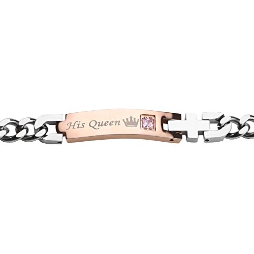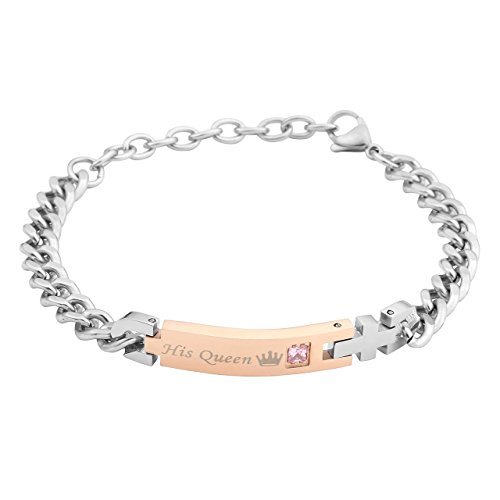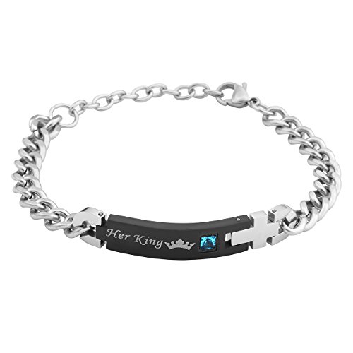 Zysta Paar Schmuck Her King und His Queen Schrift Curb Kette Armband mit Gravur ein Paar partnerarmband Partner Ambander aus Edelstahl Parchen Armreifen fur verliebte Herren Da