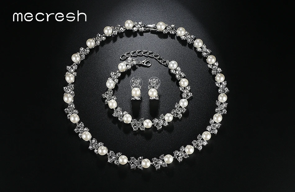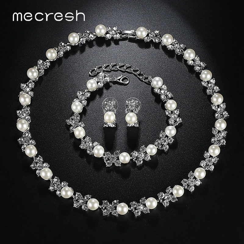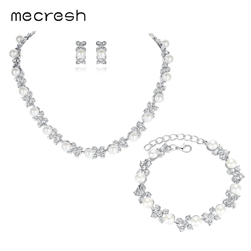 Type:Simulated Pearl Bridal Jewelry Sets/Necklace Earrings Bracelets Sets