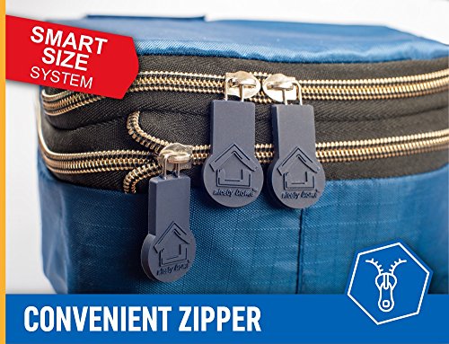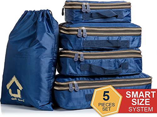 Your travels organization are about to 10X better! Using our compression packing cubes set (made with water resistant nylon) is the best way to fold things for your travel time. To get the most out of them, just roll up your clothes and you'll be amazed at how much more you can fit in each cube and laundry bag. Not to mention, if you travels with someone, our products system makes it super easy to separate each person's clothing into a different bags so you won't be left rummaging in the suitcase for what you need! And it makes your flight way easier with them in your carry on luggage Each of the bags has its own handle (exclude laundry) too so it's like a small case in itself that you can carry separately if you need to Plenty of storage size options for you (all sizes in inches): 1st cube- XL size - 17.5 x 12.75 x 4/8 2nd - L - 13.75 x 12.75 x 4/8 3rd - M - 13.75 x 9.75 x 4/8 4th - S - 11 x 6.75 x 4/8 5th - Shoe bag: 15(w) x 21 (h) And there's zero risk when you buy today 90-days money back guarantee.Feature