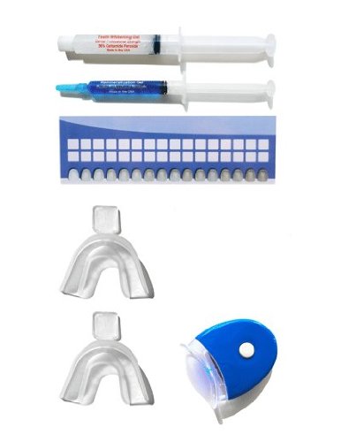 -. Feature : 1- Syringe 10ml (Good for 48 applications!) of 22% Carbamide Peroxide Teeth Whitening Gel / 1 - Plasma Light Transmitter to Speed Up Reaction of Whitening Gel / 1 - Syringe of Remineralization to Reduce Tooth Sensitivity / 2- Thermo-Molding Mouth Trays / Complete Easy-to-Follow Instructions