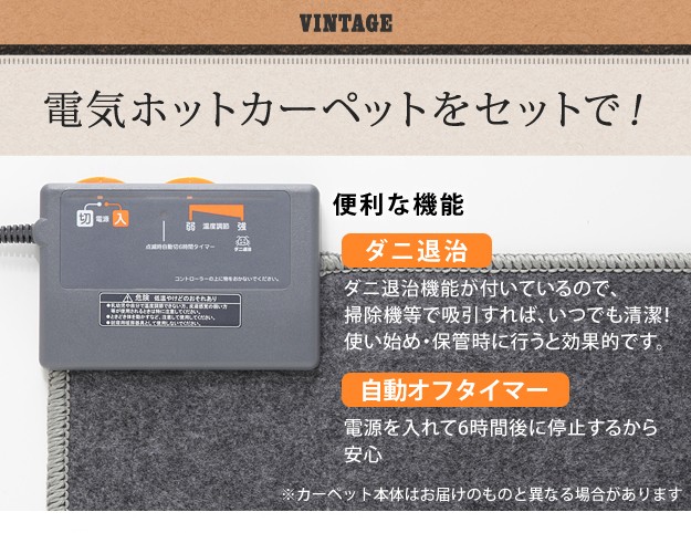 ■ホットカーペット本体表面材:ポリエステル100%(タフト)裏面材:ポリエステル100%(フェルト)ダニ退治、6時間自動切タイマー付きアルミシート付き