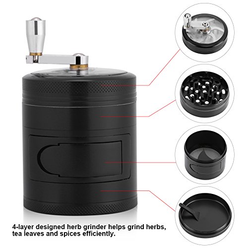 - Easy access, side opening: Comes with a 2.3 inch easy access opening to take out the residue, the sharp and durable zinc alloy teeth could guarantee fine grinding