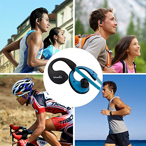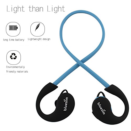 Bluetooth Headphones, Bluesim® 4.0 Wireless Headphones Running Gym Exercise for Iphone 6 Plus 5s 4s Galaxy S6 S5 and Android Tablet (Blue)